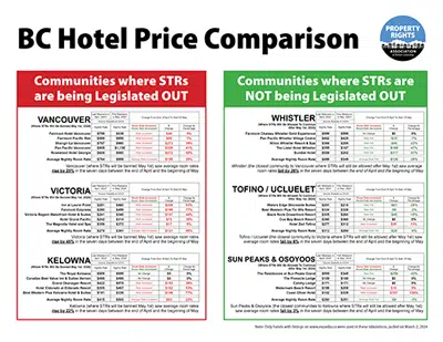 Even more significant is the comparison between Vancouver where STR’s will be gone and Whistler where they will remain. In this case, room rates in Vancouver go up by an average of 25% while Whistler’s decline by 26%.